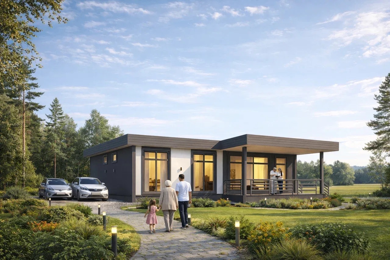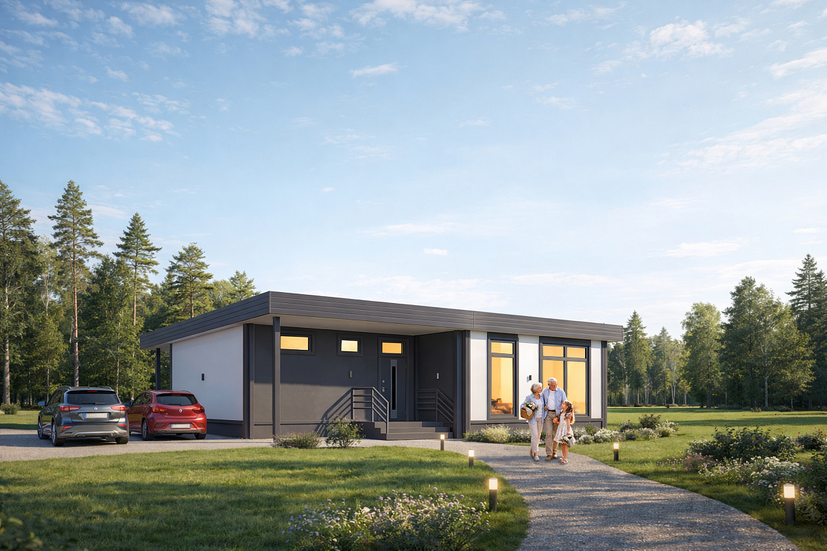Домокомплект DOORHAN 133 ПРО — это полноценный дом для большой семьи и нескольких поколений. Мастер-спальня с собственным санузлом формирует отдельный приватный блок для родителей. Две дополнительные спальни позволяют удобно разместить детей, родственников или организовать рабочий кабинет. Пространство дома рассчитано на долгосрочное проживание и разные сценарии жизни семьи.